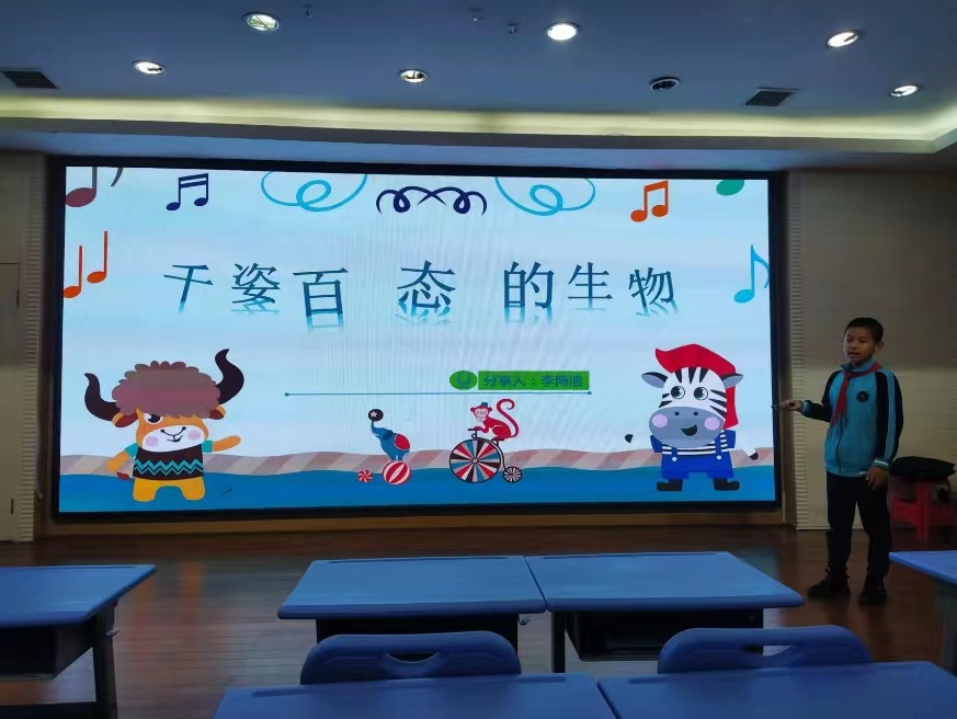 第二个环节,两名岳阳楼小学六年级员工分别围绕“生物”、“花朵”的主题进行现场讲解。孩子们用精美的PPT向众人呈现其探究性学习的成果,稚嫩的童声中洋溢着知识的力量与自信的光芒。