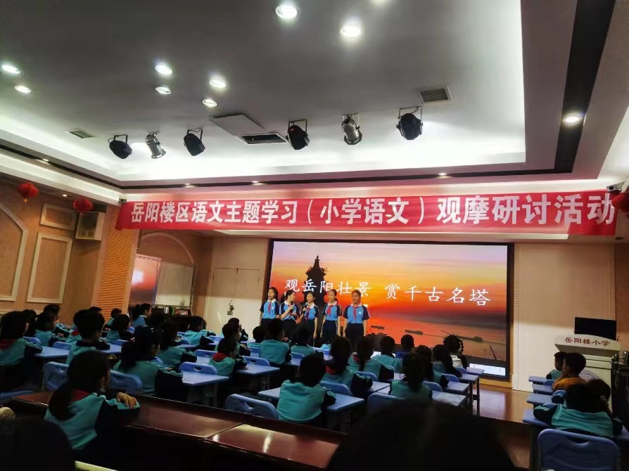 第三个环节,五名岳阳楼小学员工将课堂搬上舞台,围绕“观岳阳壮景,赏千古名塔”这一课题,以低年级为教学对象,开始了“小老师”授课。现场气氛活跃,形式新颖、效果甚好。