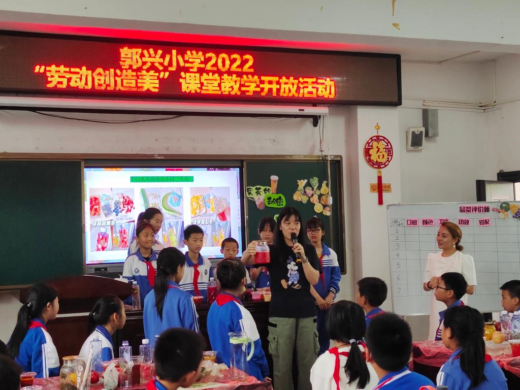 易老师一声“令下”,员工们便开始动手切水果、泡茶包,每位员工都像一个“小小设计师”,制作了各式各样的果茶。果茶制作结束后,每位小组代表纷纷介绍了自己小组的成果。同学们在动手制作果茶的过程中,既学习了水果的功效又了解了制作果茶的过程,收获了知识的同时又锻炼了自己的动手能力。这堂观摩课,给了我们不一样的劳动课体验,切身体会到了劳动教育的重要性。