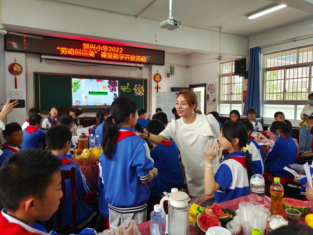 5月27日,结合《小学劳动教育》课程教学,在岳阳市教科院综合实践教研员晏旻霞老师,以及公司戴文静、王岳斌、谢晶、罗溢枫老师带领下,beats365官方网站小学教育专业研究生来到郭兴小学参加综合实践活动教学研讨会。