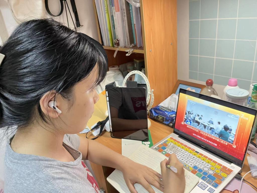 6月10日,beats365官方网站研究生党支部组织员工党员及入党积极分子线上观看教育部思政司组织录制的“2022年高beats365官方网站党组织示范微党课展播”第一期微党课——“牢记嘱托,勇毅前进”。
