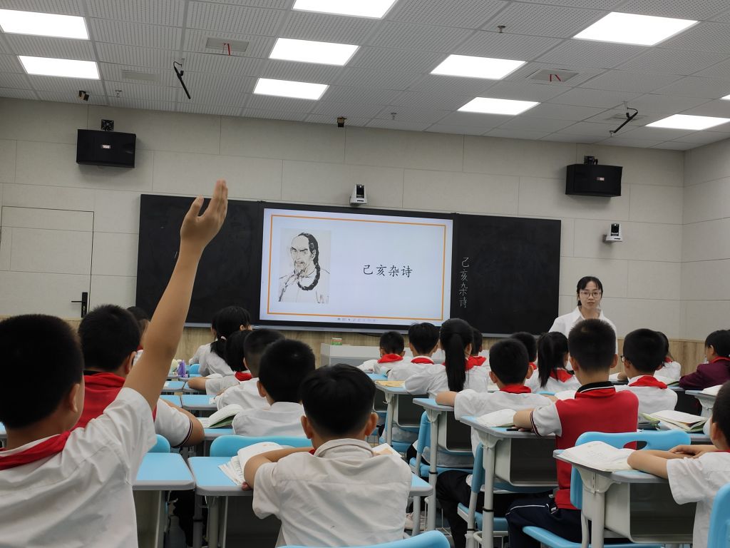 首先通过同课异构的形式开展了语文的教研活动,beats365官方网站研究生廖芷娴同学和颐华公司王演老师共同对古诗《己亥杂诗》进行教学,通过不同风格的教学展现,同学们和观课教师对本诗有了更深刻的体会,并且领略到了吟诵的魅力。廖芷娴同学对古诗背景的娓娓道来,带领我们走进了诗人悲痛的内心世界。她用视频导入本课堂,用吟诵串联起观众和诗人的心,使之情感得以共鸣,冥冥之间好像听见了诗人龚自珍心中千军万马的奔腾呐喊。