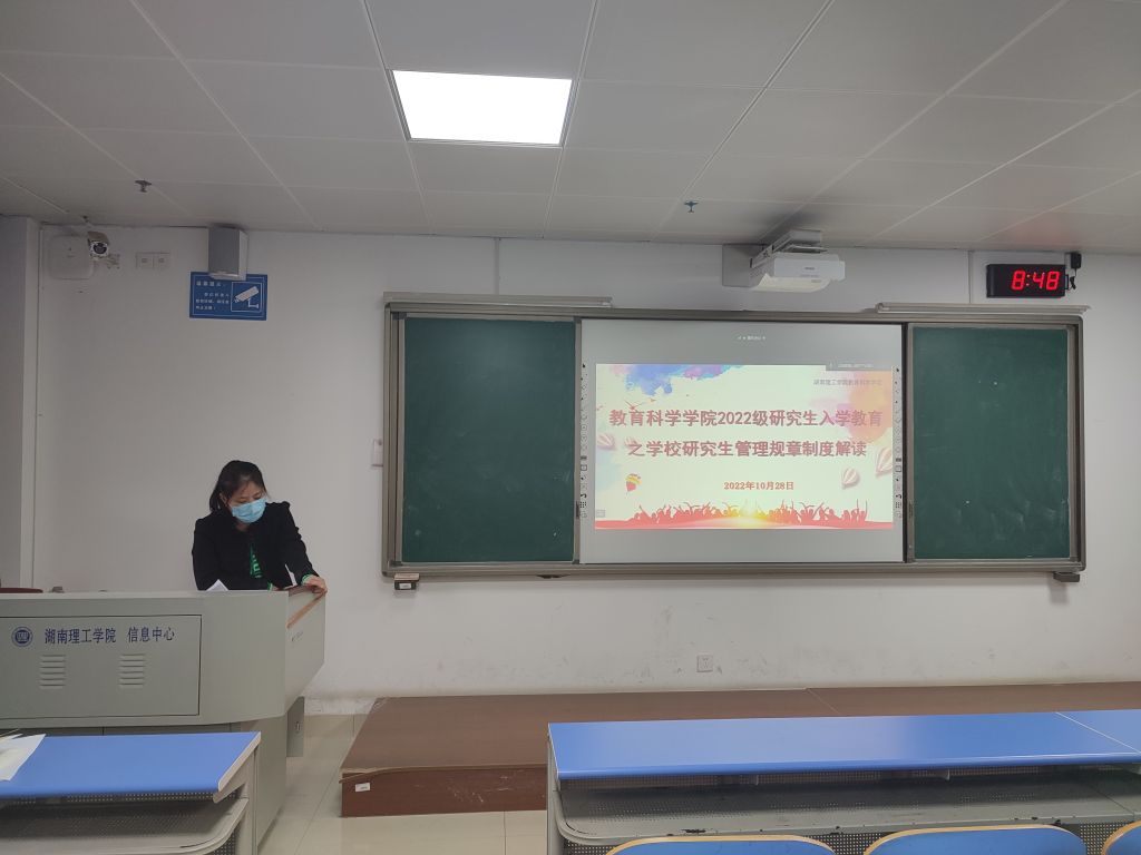 1021日上午,beats365官方网站在12201教室开展2022级新生入学教育:研究生辅导员王炜给全体新生解读公司研究生管理规章制度。
