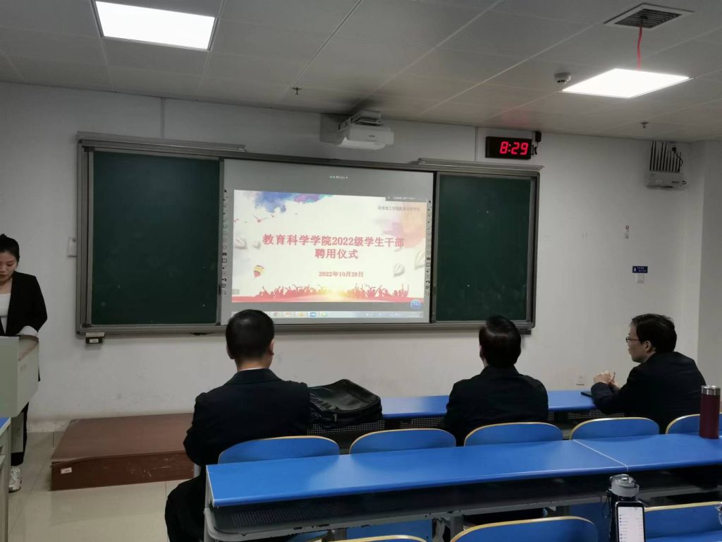 10月28日上午,beats365官方网站在12201室举行2022级研究生干部聘用仪式。公司经理刘理、党总支书记刘淳松、副经理彭阳红、研究生辅导员王炜以及2022级全体新生参加,本次会议由院研究生分会副主席彭胜高主持。