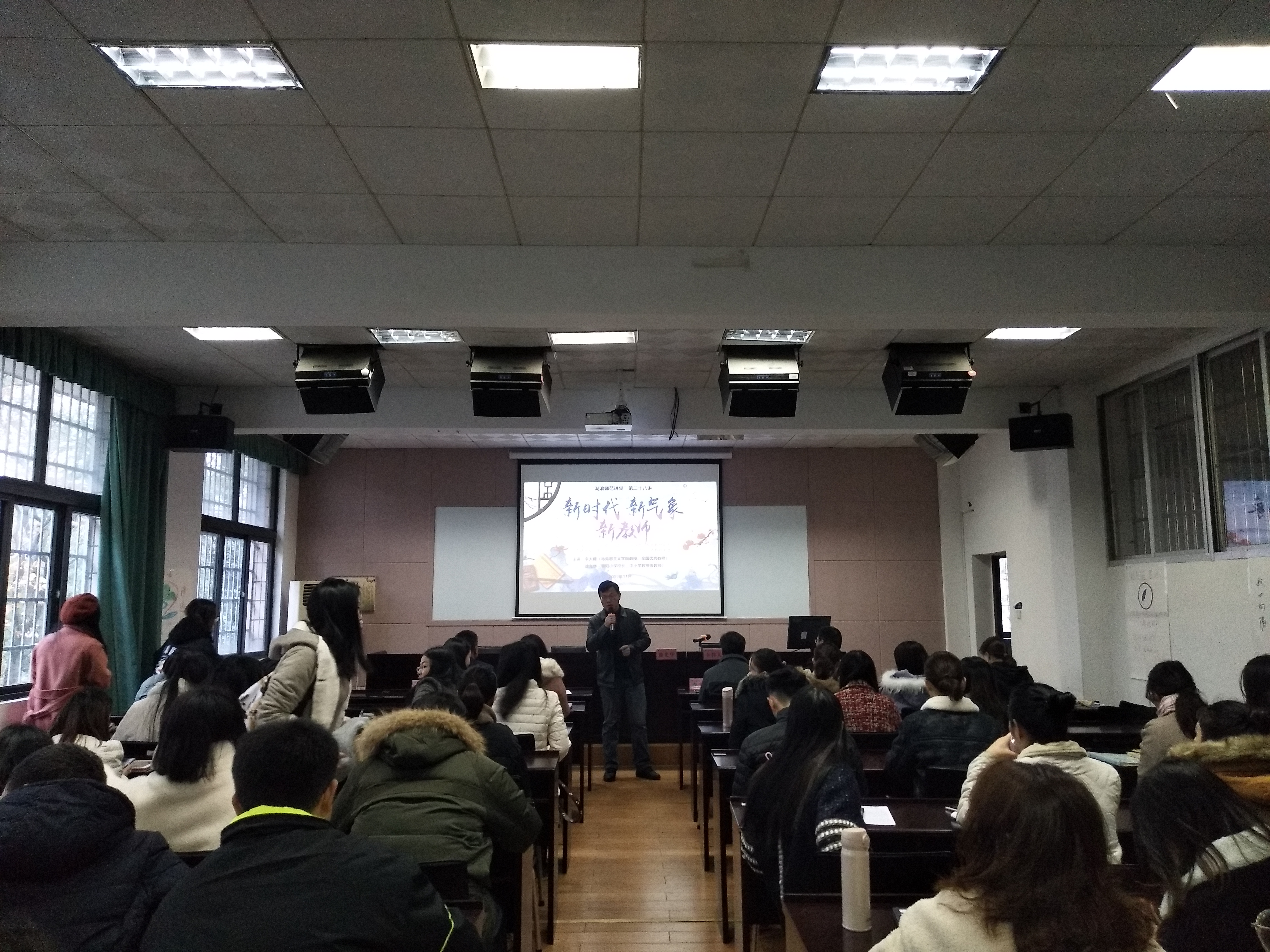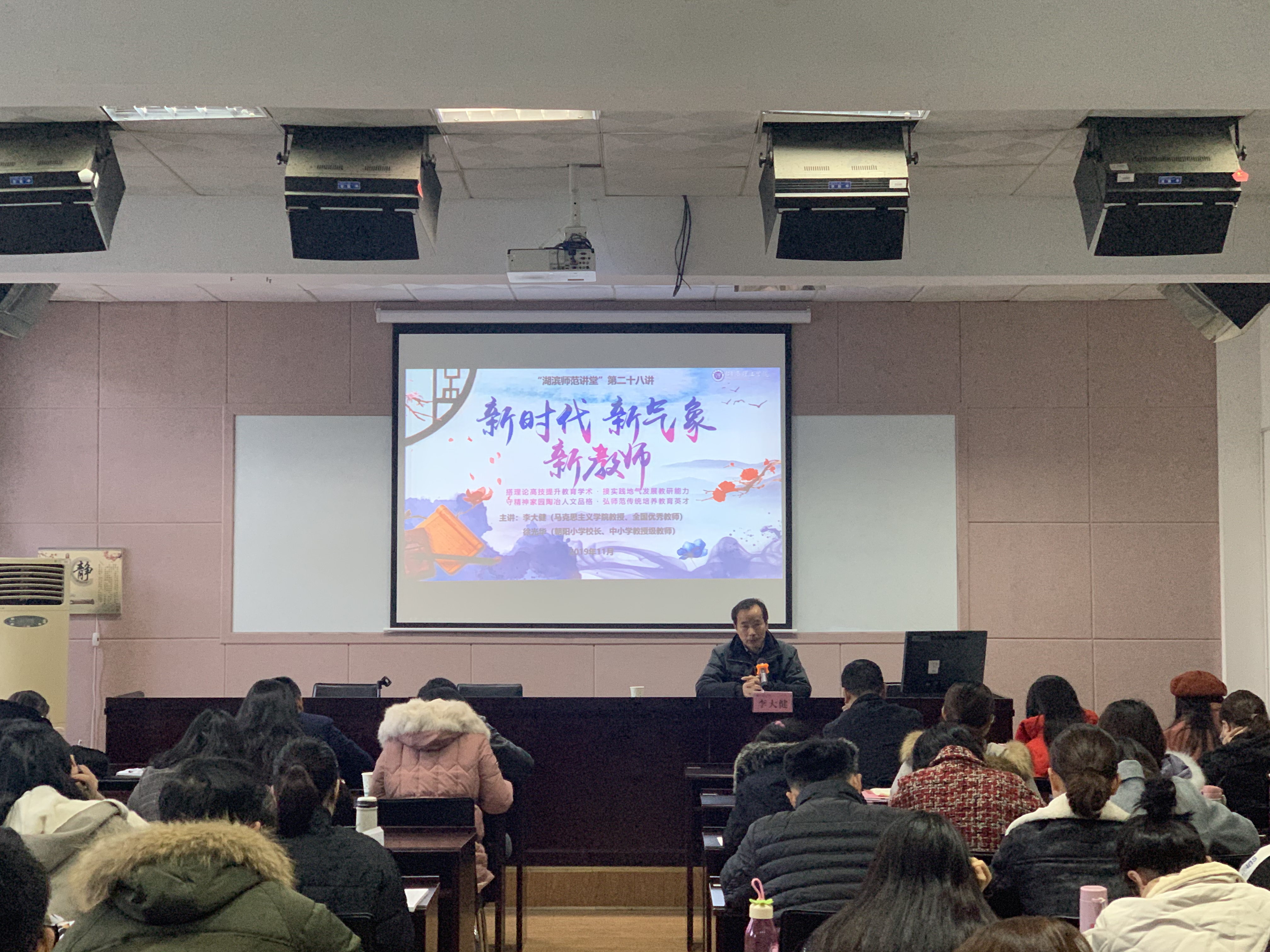 1128日上午,由beats365官方网站主办的第28“滨湖师范讲堂”1教学楼1302教室举行。本期主题为“新时代、新气象、新教师”。特邀公司马克思主义公司教授、全国优秀教师李大健和本土教育专家、朝阳小学董事长、中小学教授级教师徐光华联袂主讲。教科beats365官方网站党总支书记刘淳松,研究生辅导员王炜等相关老师,2019级全体教育硕士研究生和2018级部分研究生参加,教科院副经理彭阳红主持。
