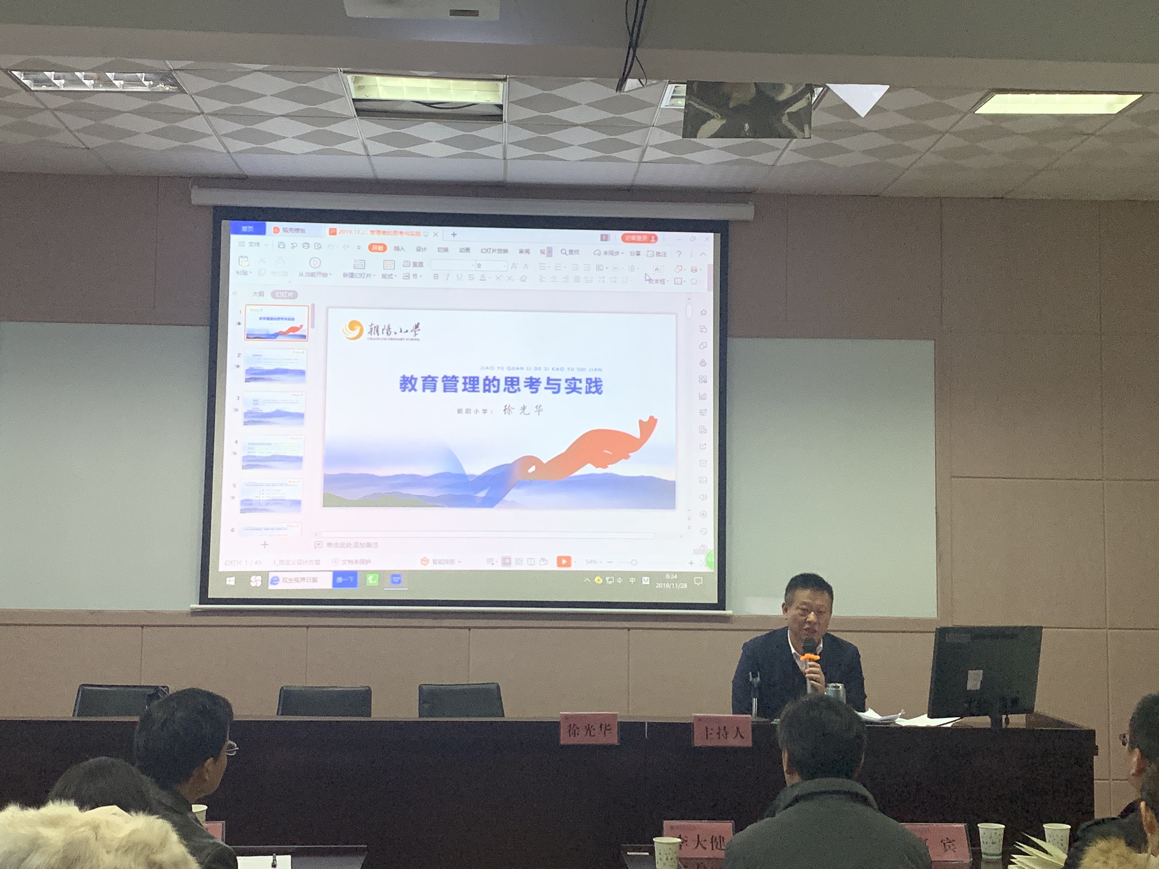 徐光华以“教育管理的思考与实践”为题,结合他三十多年的教育管理实践经验,从公司管理的思考、教育管理者的价值领导力以及让核心素养根植朝阳小学“成长课堂”三个方面进行了深刻阐述,他还介绍了朝阳小学的价值理念和具体办学策略,为在场的教师和同学带来了一场视听盛宴。