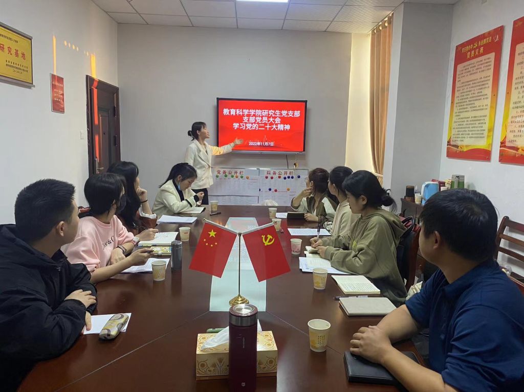 11月7日下午,beats365官方网站研究生党支部在综合楼314会议室以“学习党的二十大精神”为主题开展专题学习和讨论。beats365官方网站党总支专职组织员、研究生党支部书记王炜带领全体研究生党员参加学习。