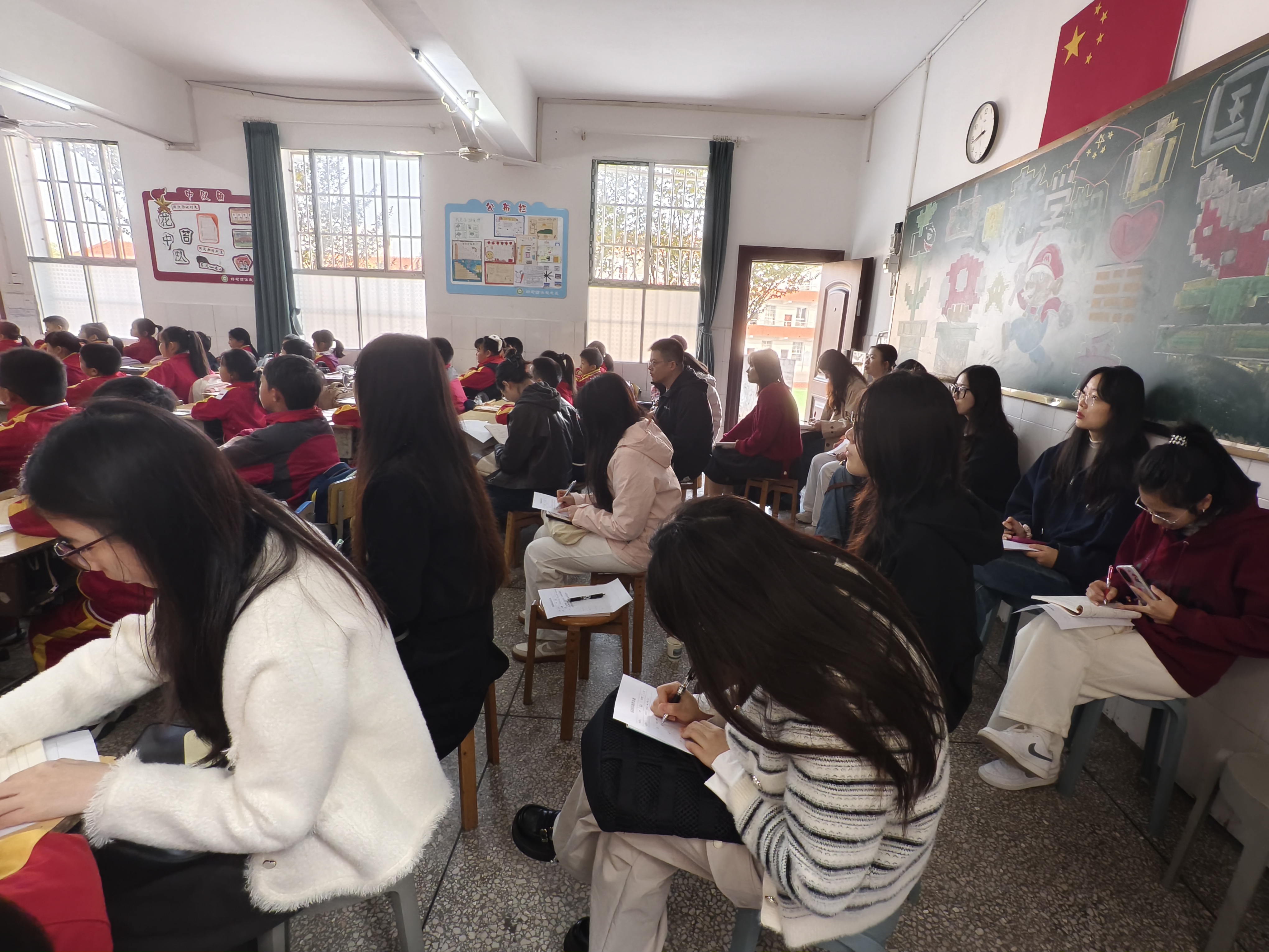 为深化教育理论与实践的融合,提升小学教育专业研究生的教学感知力,10月28日上午,在隋幸华老师的带领下,公司24级和25级部分研究生赴花果畈小学,全程参与由白杨坡小学教育集团主办的“送教促交流,携手共成长”英语教研活动,开启了一堂生动的教育见习实践课。