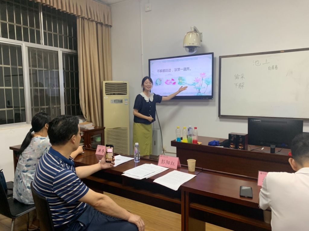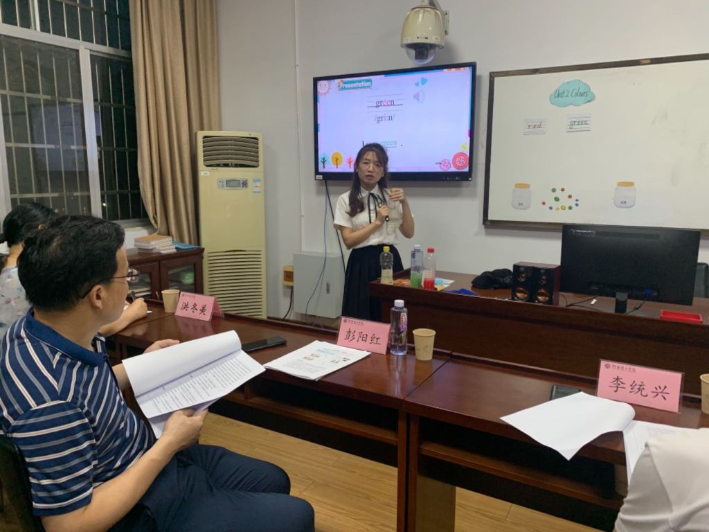 参赛同学先依次展现了自己的教学设计和片段教学,老师们针对每一位选手的表现,分别从教学环节、教学方法、教学课件、教师形象等方面予以点评和指导