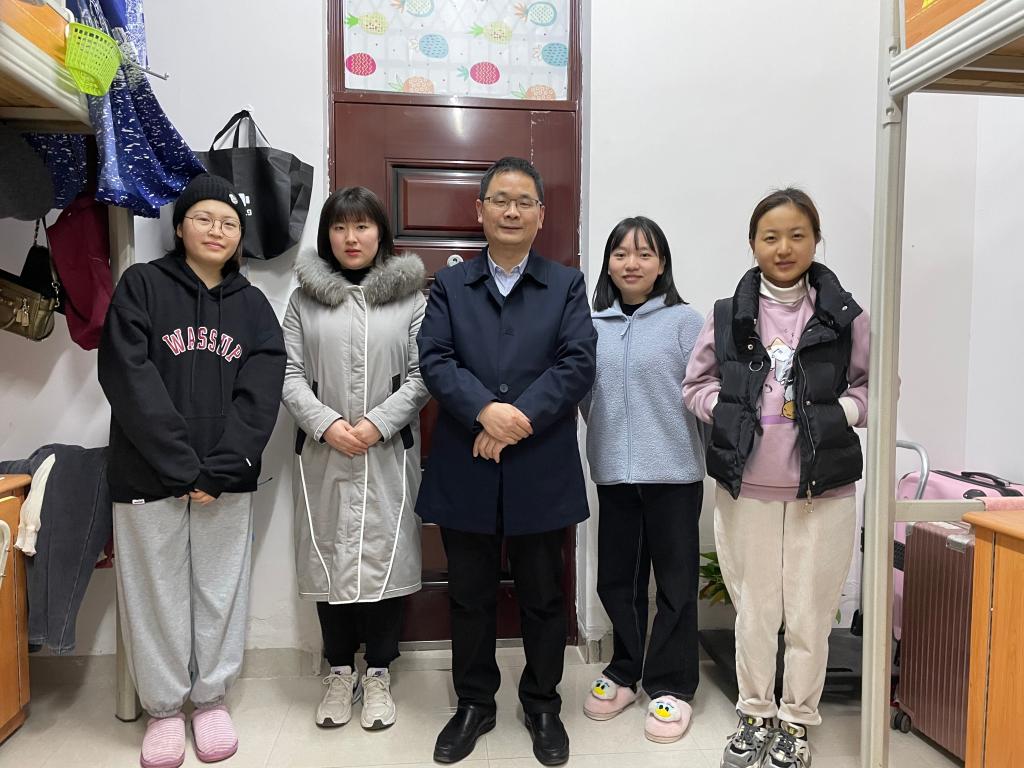 每走到一间宿舍,刘淳松与同学们进行亲切交流,认真了解同学们的思想动态,并嘱咐同学们做好返校宿舍卫生清洁,遵守公司规章制度,提高宿舍消防安全意识。他还详细询问了同学们在校遇到的各种困难和问题,他贴心地提醒同学们初春季节注意保暖,保持健康的身体状态,希望同学们合理安排学习时间,认真完成学习及科研任务。(撰稿:孙辰宸)
