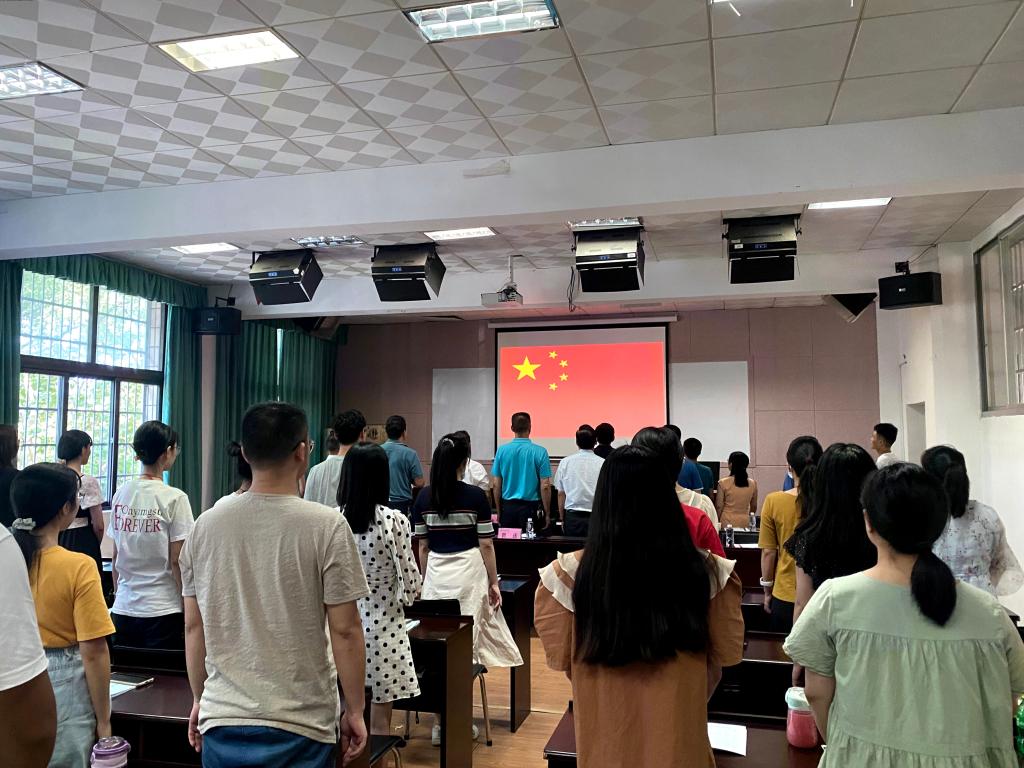 雄壮的国歌声拉开了开学典礼的序幕。周从山发表讲话,希望研究生牢记立德树人,学会学习,学会研究,学会生活。研究生导师代表赖颖慧致辞,殷切期望全体同学能有良好的心境,为自己做好时间规划,将理论知识与教育实践结合,将广泛阅读与深入阅读结合,将批判思考与创新思考结合,培养时不我待、昂扬奋斗的精神。2020级小学教育专业高佳玥同学代表在读研究生、2021级小学教育专业杨圣同学代表新生先后发言,交流经验与感想。刘理向2021级新生表示衷心的祝贺和热烈的欢迎,向同学们简要地介绍了公司的基本情况,希望同学们弘扬实干精神,立鸿鹄之志,谋美好未来,静下心来思考,争做一名优秀研究生。