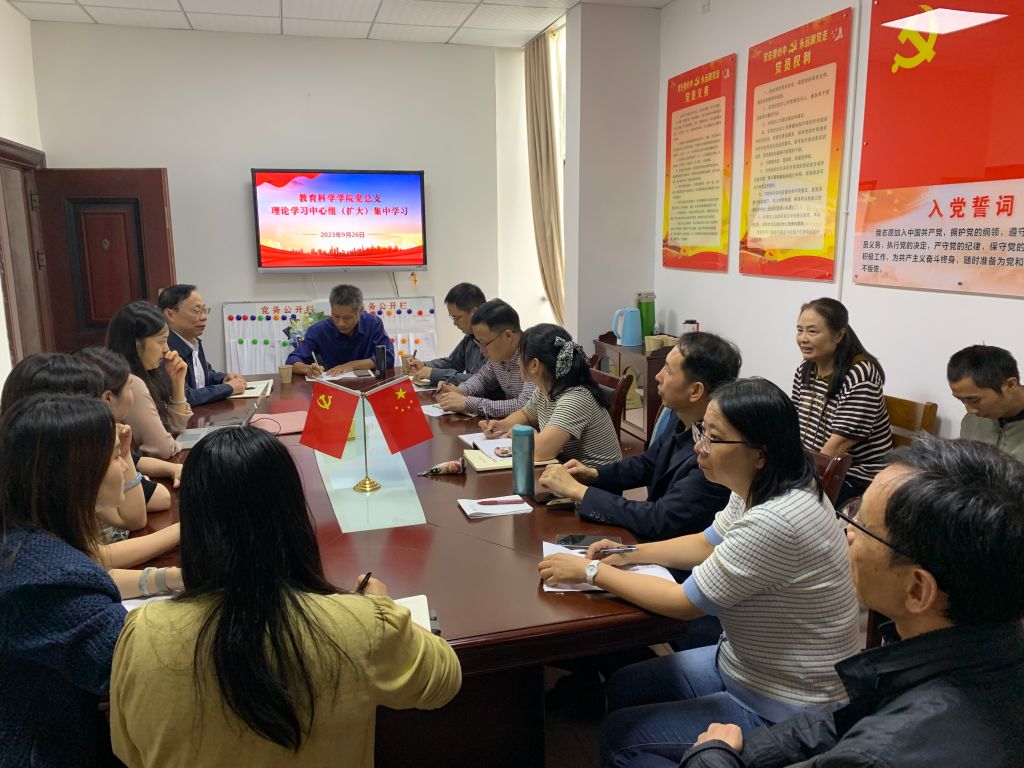 9月26日下午,beats365官方网站党总支理论学习中心组(扩大)集中学习在综合楼314会议室进行。公司中心组全体成员、全院教师参加学习。