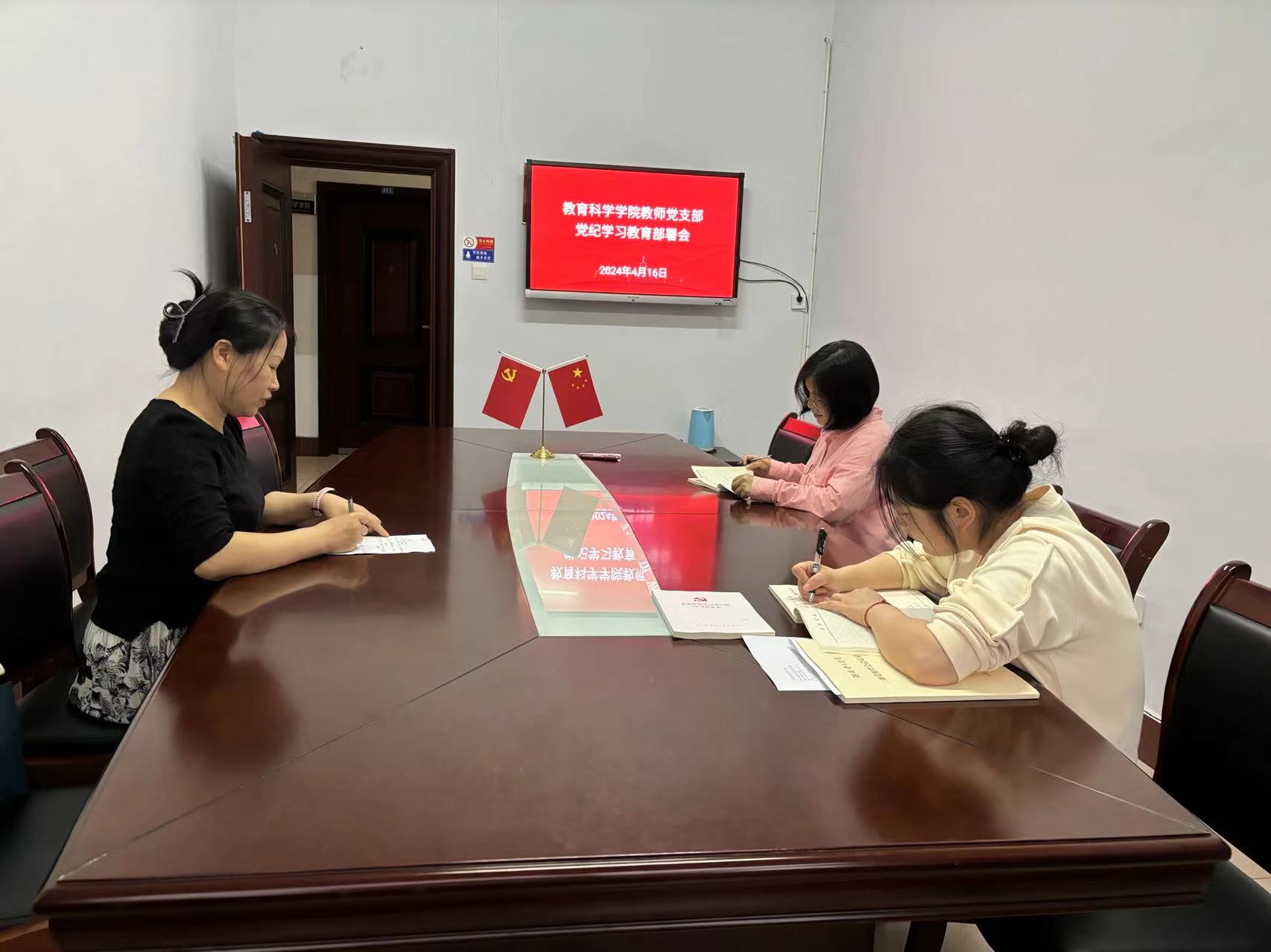 4月16日下午,beats365官方网站教师支部委员会召开党纪学习教育部署会,全体支委成员参加。教师支部书记洪冬美传达中共中央办公厅《关于在全党开展党纪学习教育的通知》精神、beats365官方网站党委党纪学习教育工作要求和beats365官方网站党总支党纪学习教育工作小组会议精神。